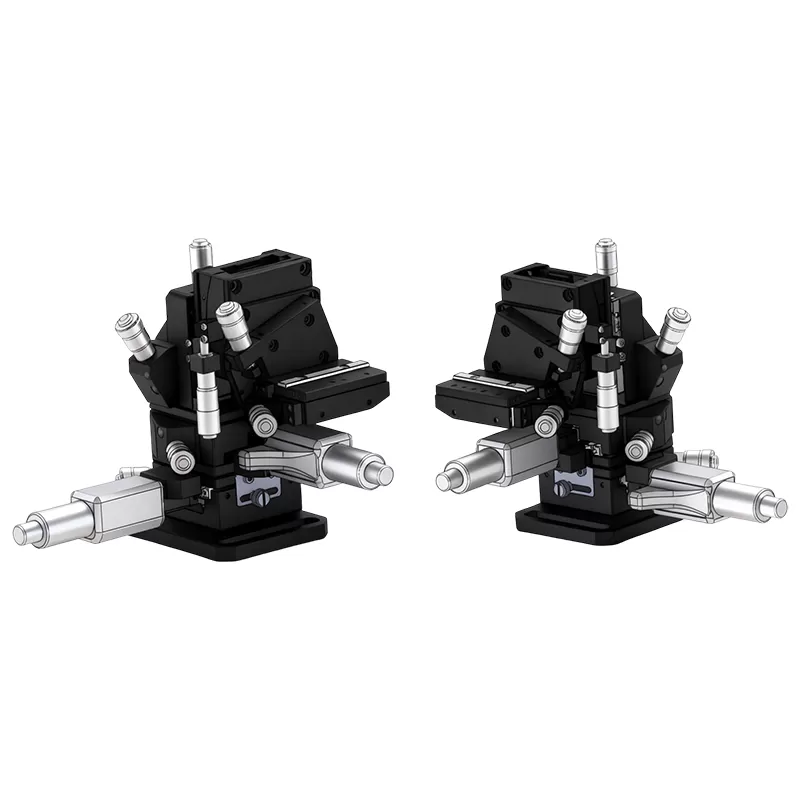 六维调整架是在手动调整架(XYZ)、角度调整架(θxθy)上增加了测角仪调整架(θz)。最适用于需调整光纤阵列和光波导等光轴相应旋转方向的多芯器件调芯用途的调节架。还备有内角度型,适用于光分路器耦合的夹具组件以及调整间距的CSM设备。