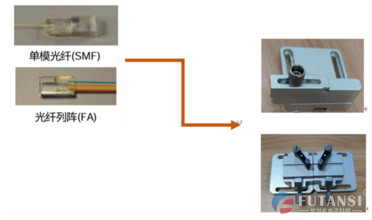 为了更好的保证对准精度,就需要设计精良的器件夹具。在无源器件对准系统中主要是使用光纤夹具、波导夹 具和FA夹具。如果使用的是标准的商业化器件做封装的话,一般光纤与FA的夹具是相同的。