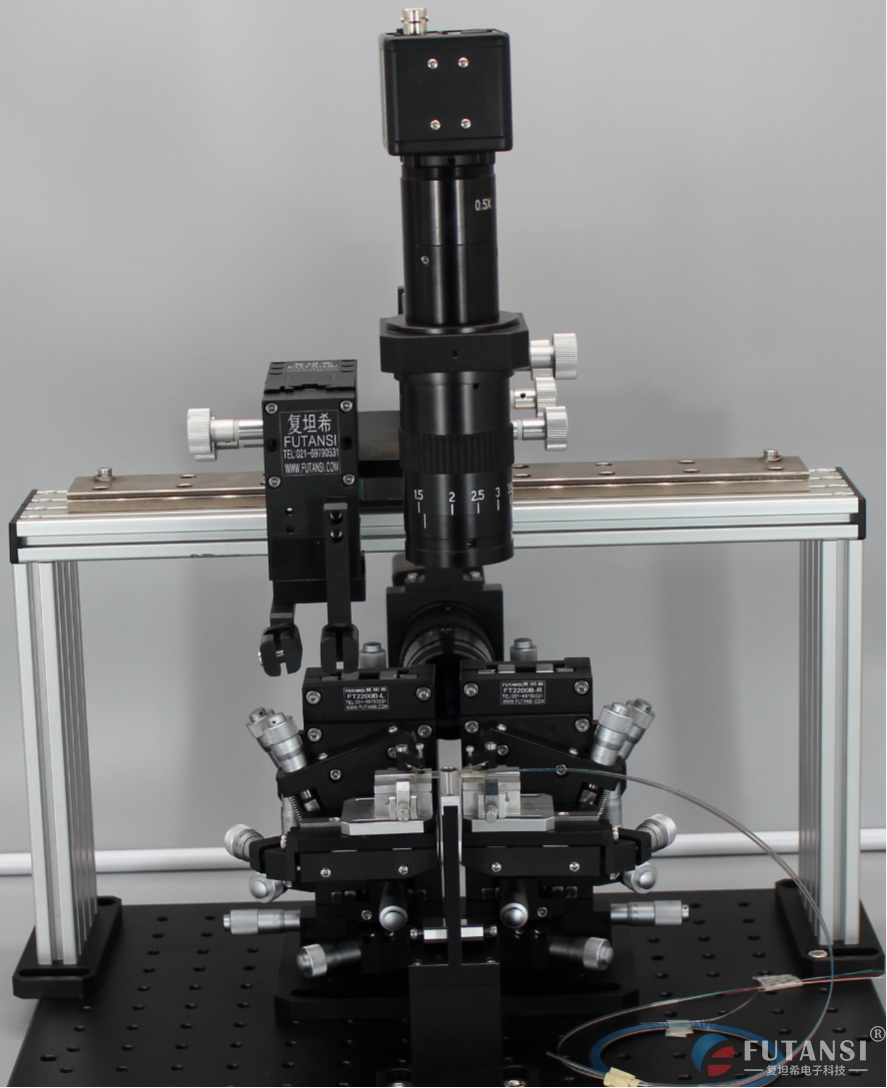 观察系统主要是用来观察对准时器件的上端面和后端面状况的。主要是由显微变焦镜头、 CCD摄像机、监视器和冷光源组成,还有微调架可以对两个镜头分别进行三个方向的调节。